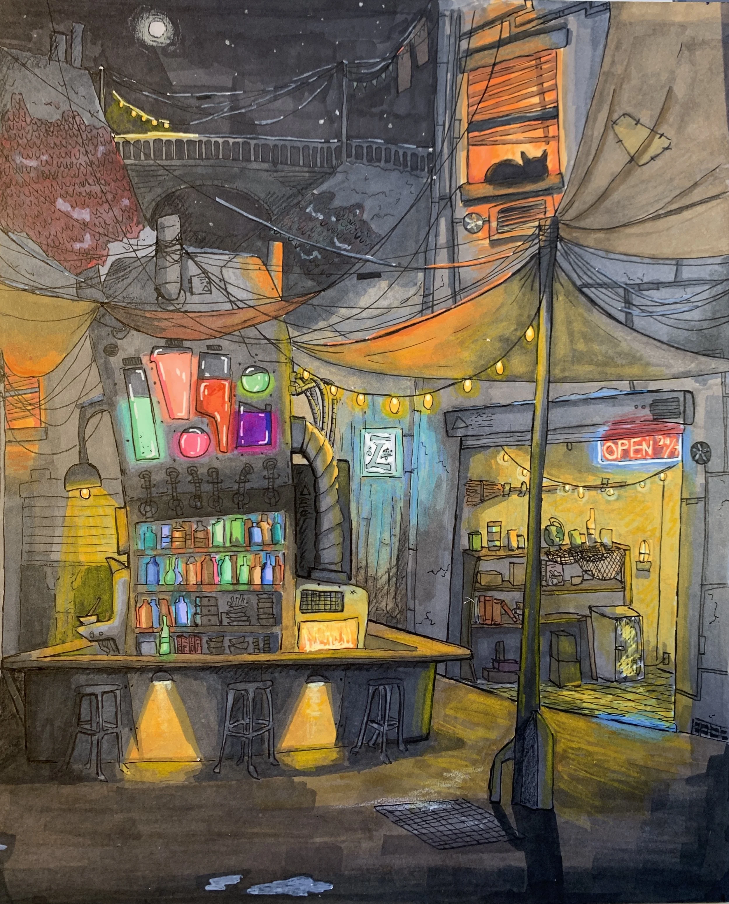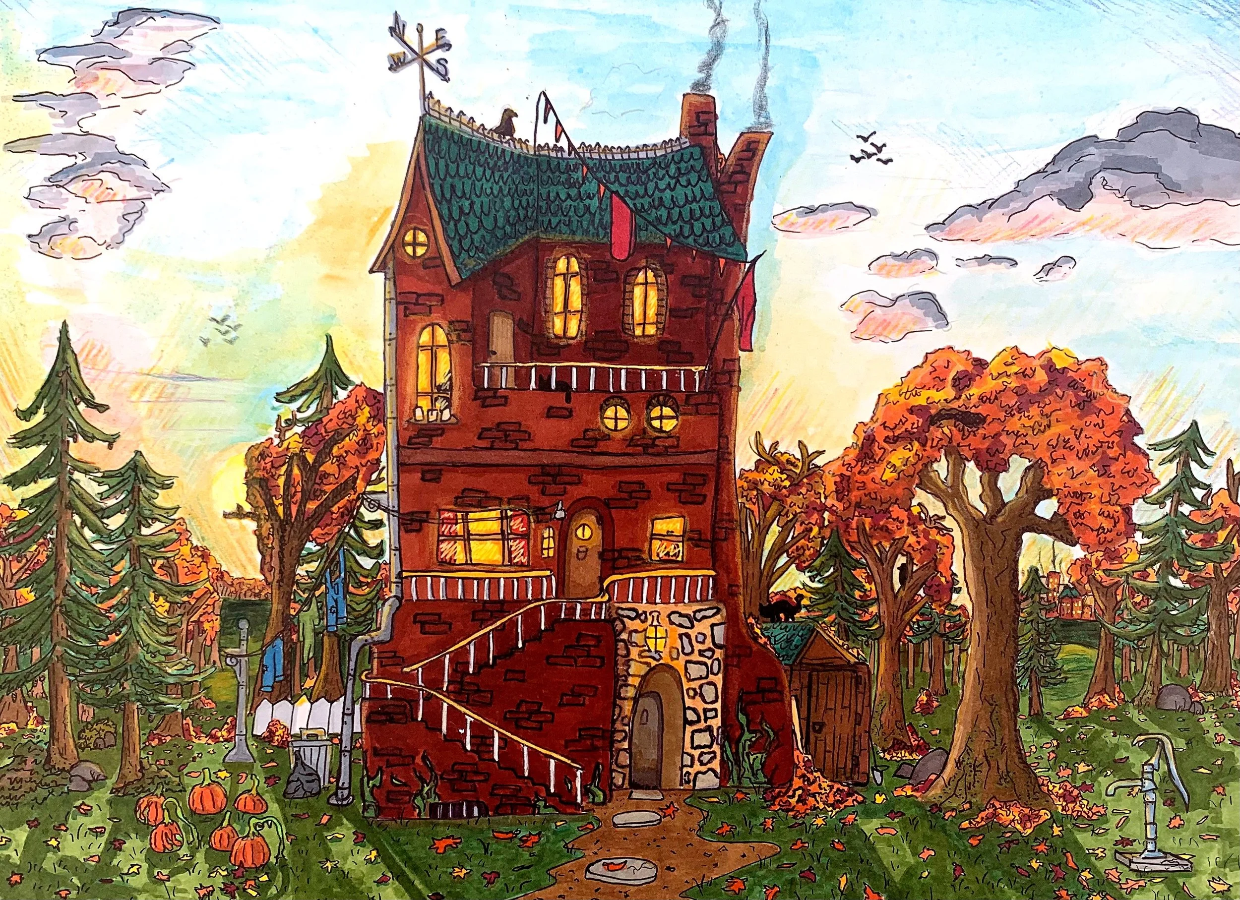 8×10in, Marker, Micron Pen, Color Pencil
