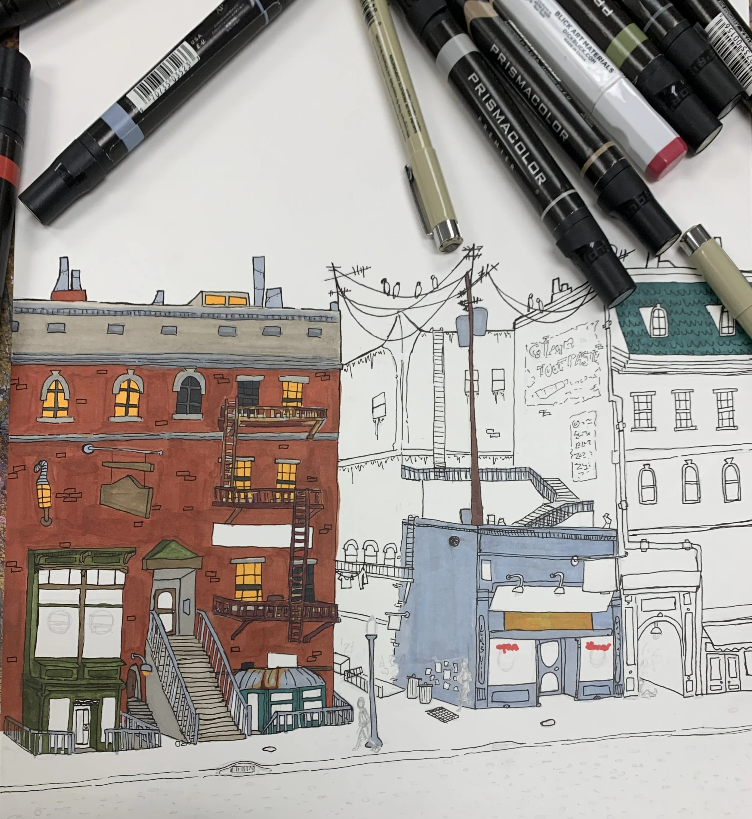 9×12in, Marker, Micron Pen, Color Pencil